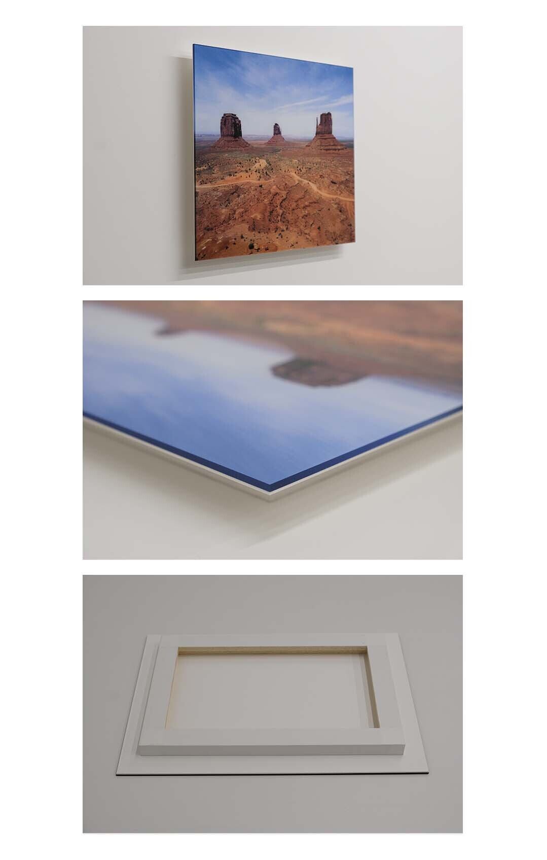 写真の表面にアクリル板を貼り付ける加工です。写真を傷付けず保護するとともに透明感が生まれ、作品の奥行き感を強調できます。耐久性、耐光性に優れ、表面の濡れ拭きもできるため長期間飾るのに最適です。